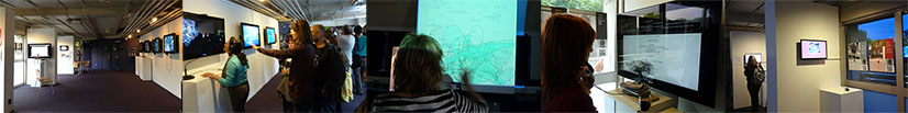 This exhibition was arranged in conjunction with the E-Poetry [2013] Festival at Kingston University-London, which I have had the privilege to convene. The works were selected from the submissions to the festival and taking into account the Riverside Gallery’s space at the Watermans Art Centre.